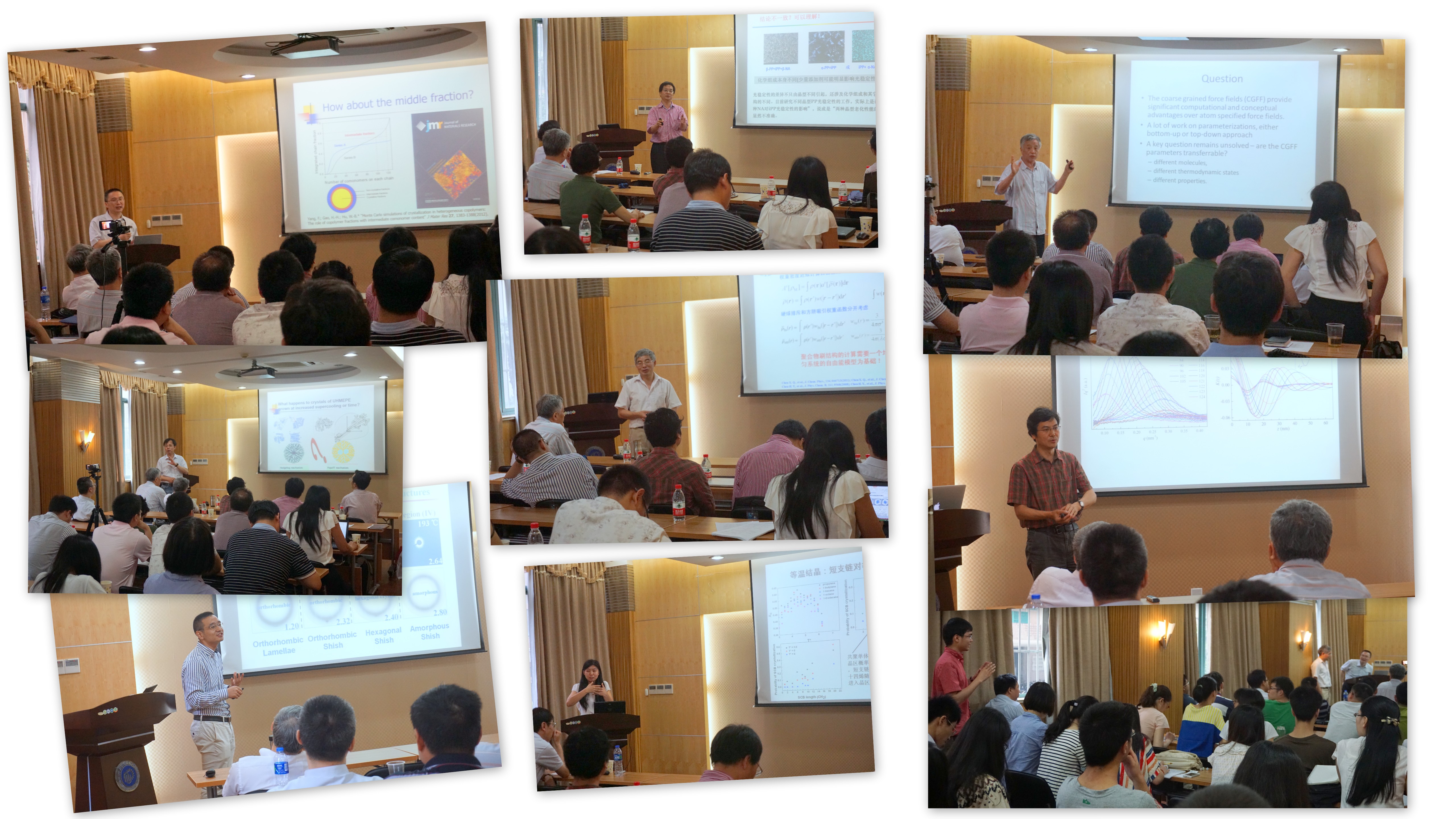 与会专家们分别从聚烯烃结晶机理的实验研究及分子模拟等方面给华理的师生们带来了八场高水平的学术报告。专家们的报告旁征博引,精彩纷呈,对聚烯烃结晶机理及影响因素、先进聚烯烃结晶表征手段、聚烯烃结晶的动态Monte Carlo及分子动力学模拟、粗粒化力场可迁移性等方面做了详尽的介绍,获得来自iPornTv