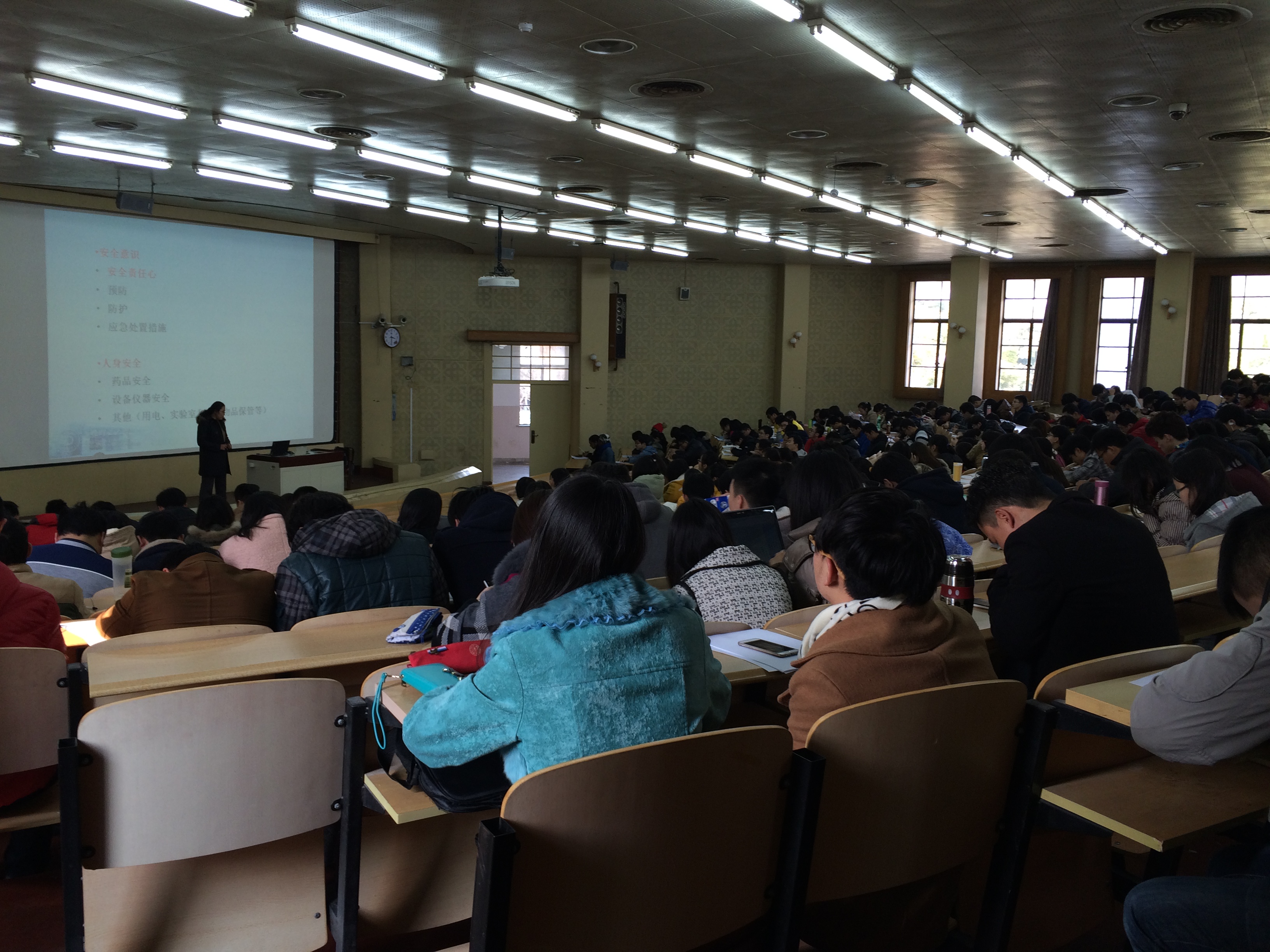 在七大对所有毕业班学生开展了实验室安全知识讲座。程瑞华老师就实验室安全概述,安全知识及典型案例、个人防护,华东理工大学管理条例和应急处理五个方面作了详细而全面的报告。