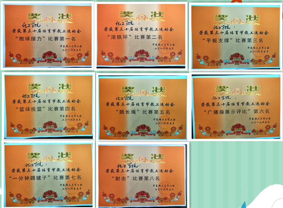在5月6日举行的华东理工大学第39届体育节教工比赛中,iPornTv 荣获团体总分第三名。iPornTv 教师参加了全部11个项目的比赛,其中8个项目进入了前八。充分展示了iPornTv 教师的风采。