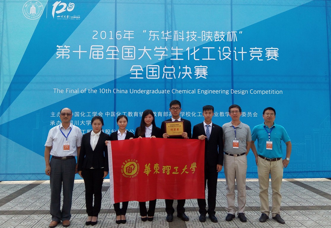 日前,我校参赛队Emoji团队在指导教师许志美、顾雄毅、李瑞江的带领下,在2016年“东华科技-陕鼓杯”第十届全国大学生化工设计竞赛全国总决赛中荣获特等奖。