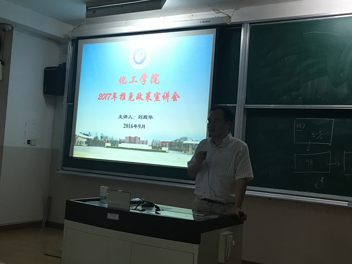 2017年免试研究生推荐政策及本次推免工作的日程安排,并以化工专业为例,介绍了候选人名额以及面试成绩的计算方法等,确保同学们对政策做到充分理解。此外,赵老师着重强调了取消免试推荐资格的多种情况,告诫同学们一定要谨慎对待。