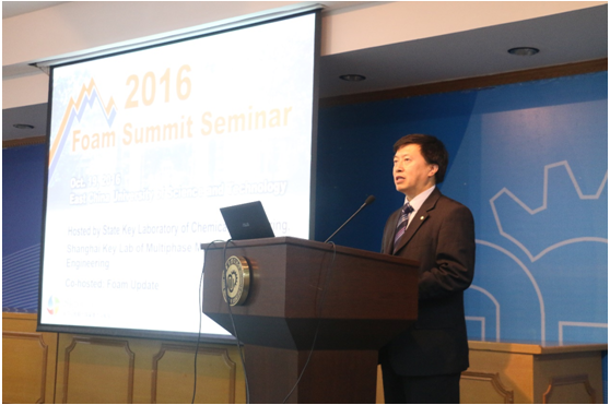 10月19日,由华东理工大学化学工程联合国家重点实验室和上海市多相结构材料化学工程点实验室(筹)主办、Foam Update协办,在我校逸夫楼演讲厅召开了2016发泡高峰论坛研讨会,邀请了5位国际顶尖的聚合物发泡领域专家分享他们的成果和经验。我校副校长刘昌胜教授代表学校向来自世界各地的专家学者表示热烈欢迎。研讨会由Foam Update的执行主席S.-T. Lee博士和我校iPornTv