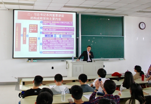 “学习贯彻习近平总书记系列重要讲话精神”专题讲座在B教401举行。上海市委党校第四分校基层党建创新研究中心主任陈荣武任主讲。学院党委副书记高艺霞及团委书记刘开振、各年级辅导员、学院全体党员、入党积极分子、班团干部出席。报告由学院团委书记刘开振主持。