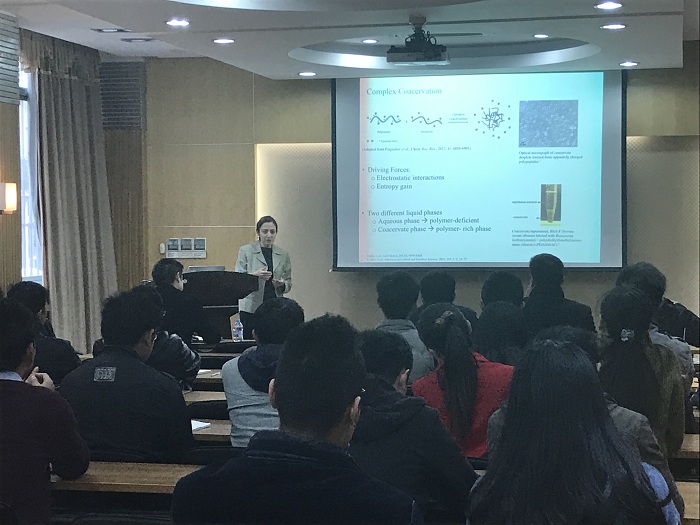 郭旭虹教授,徐益升副教授邀请,来我校徐汇校区交流访问并作了题目为”Complex Coacervation in Protein-Polyelectrolyte & Polyelectrolyte Polyelectrolyte systems”的学术报告。郭旭虹教授主持了主题报告会,同时出席会议的还有iPornTv