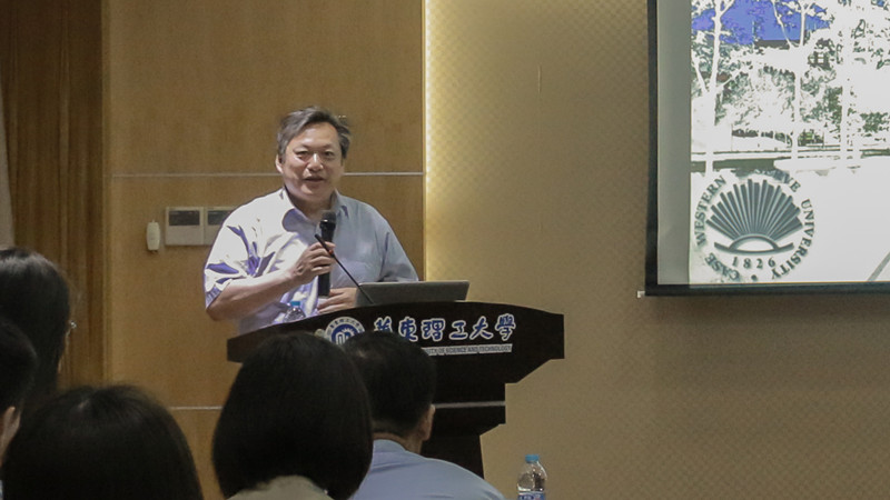 报告会上,Ishida教授首先介绍了他所在的学校-美国凯斯西储大学,并分享了他与华东理工大学的友谊,在过去的几十年里他曾多次到访我校,见证了华东理工大学的发展。