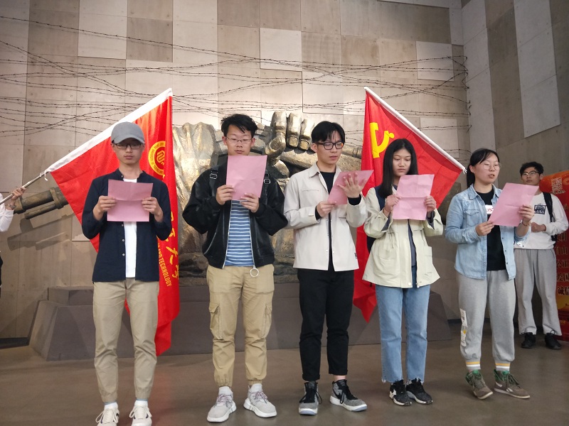 40余名入党积极分子在辅导员强莉老师、刘宗慧老师带领下,前往金山卫日军登陆点抗战遗址,开展“铭记峥嵘岁月 吟诵爱国诗篇”主题实践活动。