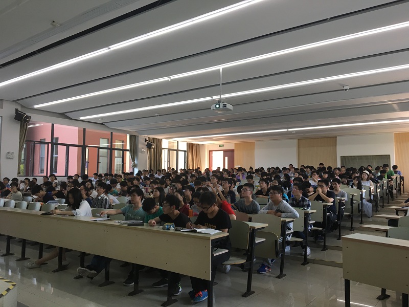 2016级年级大会在B100召开,2016级辅导员强莉主持会议。