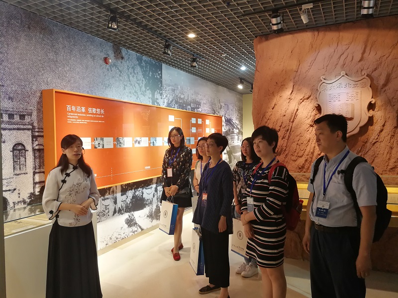党委副书记高旭东陪同参与本次论坛的各高校教师参观了天津大学校史馆。天津大学的前身北洋大学是中国第一所现代大学,校史博物馆分为“巍巍学府、国之大学”、“工法结合、大学肇始”等10个展厅来还原和再现天津大学的创办发展历程,展现了天津大学的百折不挠的民族精神与新时代的深刻内涵。讲解员绘声绘色地细致讲解了学校发展的峥嵘历史,带领教师们进行深度参观,加深了与会教师对“中国近代高等教育之先河,中国近代大学文化之源泉”大气磅礴精神气质的感悟。