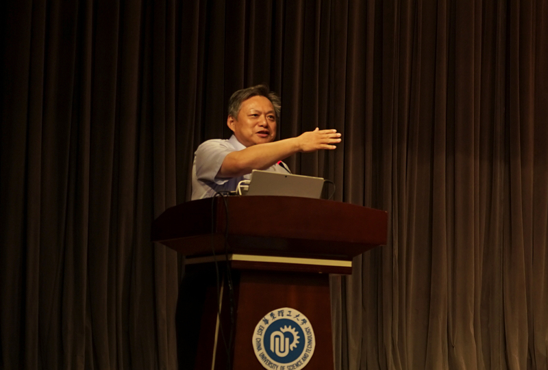 新生表示热烈地欢迎。他以16岁的新生田馨月和志愿为高中捐赠足球场的新生马上轩为例,对于含辛茹苦培养如此优秀学子的各位父母表达了谢意,同时也表示华理将用最优秀的师资将他们打造成为“厚基础、强实践、高素质、具有创新精神和国际视野”的社会一流英才。辛忠以学长和教师的双重身份对新生提出三点期望:希望在华理学习的四年,要做到独立思考,批判思维,做一个有独立人格的“化工人”;要做到勤于实践,知行合一,做一个理论联系实践的“化工人”;要注重培养自己的文化情操,做一个理工与人文并重的“化工人”,希望所有新生在华理留下绚丽的青春足迹。辛忠副校长的发言幽默诙谐,引人深思,现场不断响起热烈的掌声。