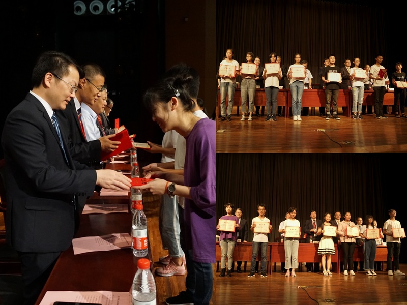 颁奖结束后,17级学生代表段旭东和新生代表马上轩相继发言。段旭东结合一年的大学生活,告诫学弟学妹们在大学不要放松自我,秉承“学在华理”传统,开阔眼界,成为更好的自己。作为学校励志明德班一员的马上轩,带着刚刚进校的懵懂和一往无前的锐气,倡导所有新生要有信心,有勇气,有梦想,有行动,不仅做海阔天空的追梦者,更要做脚踏实地的圆梦人。