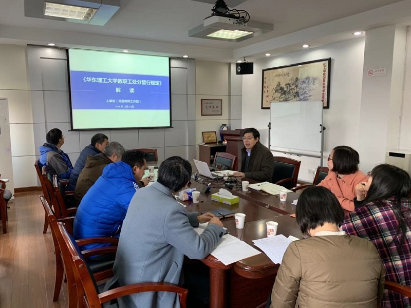 朱学栋围绕我校近期印发《华东理工大学教职工处分暂行规定》,就规定中处分的种类和适用、违法违纪行为及其适用的处分、处分的应用、处理的程序、处分的复核和申诉以及处分的变更和解除等进行了详实地解读,并引导教师支部书记和广大教师党员做有理想信念、有道德情操、有扎实学识、有仁爱之心的党和人民满意的好老师。