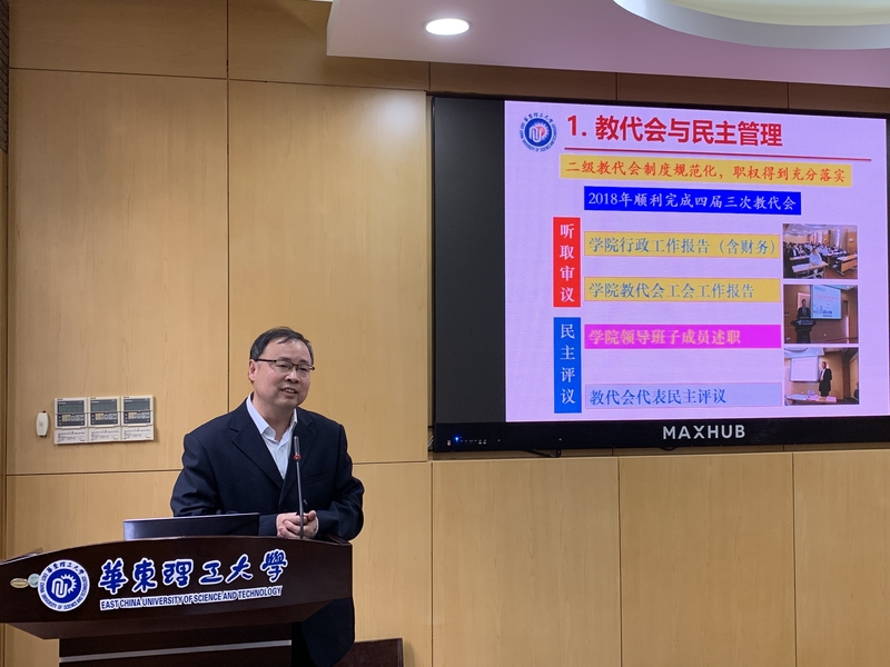 朱志华作学院教代会、工会工作报告。报告从教代会民主管理,职工素质工程建设,维权与服务,自身建设,工会经费的使用情况等5个方面回顾总结了2018年教代会、工会的工作及取得的成绩。对2019年的教代会工会工作,报告提出了在深入推进学院民主管理工作,强化代表履职责任,发挥工会桥梁纽带作用,凝心聚力促进学院发展,关心青年教师成长,丰富职工文体活动,做好工会小家建设等方面的工作举措。