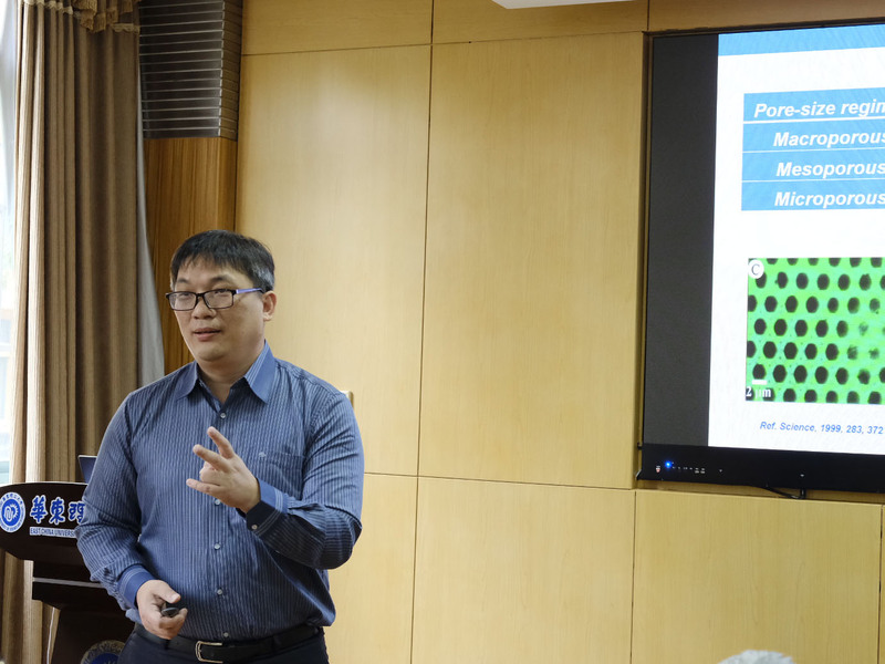 4月16日上午,台湾中山大学郭绍伟教授应我校上海市多相结构材料化学工程重点实验室邀请,作了题为“奈米多孔材料之应用” 的学术报告。辛忠副校长主持了本次报告。