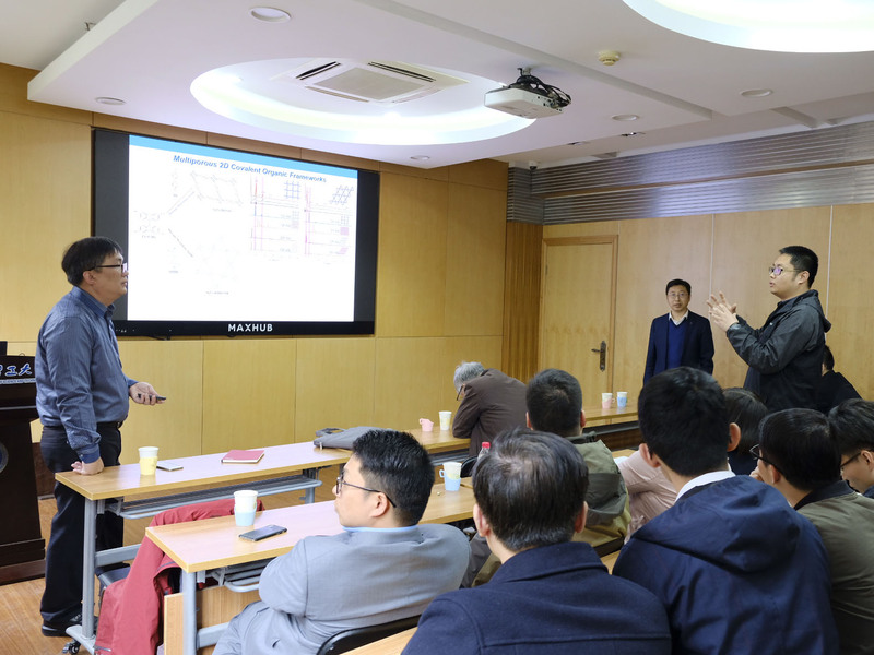 报告会上,郭绍伟教授首先分享了他与华东理工大学的友谊,在过去的十几年里他曾多次到访我校,见证了华东理工大学的发展。报告中,郭绍伟教授重点介绍自己在纳米孔洞材料设计方法方面的思路和成果,并就此方面研究的发展历程进行了生动而详细地讲解。郭教授对大孔、介孔、微孔等不同类型孔洞材料的设计原则进行了深刻的阐述,并就自己在无模板剂无需煅烧的有机孔洞材料的制备方面的工作及发展前景进行了展望,极大开阔了与会师生的学术视野。