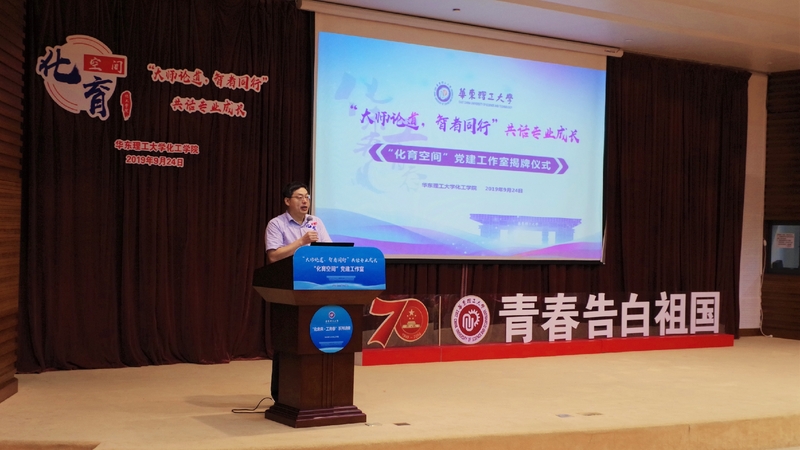 党委书记朱学栋发表讲话。朱学栋详细介绍了“化育空间”党建工作室的筹备情况、定位目标以及实施方案,师资队伍建设党建工作室将本着“立足党建,引领全局发展”的根本宗旨,开展“党建+”系列活动,致力于将工作室发展成教师教育教学能力提升的研修平台、师生互动交流中心和助力学生成长驿站。