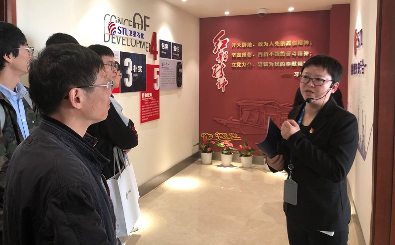 31名本硕博同学在辅导员于靖、周夏青的带领下,来到浙江卫星控股集团走访交流。同学们聆听工作人员对公司发展情况的介绍,参观集团总部和生产基地,与公司员工一起探究大化工的奥秘。