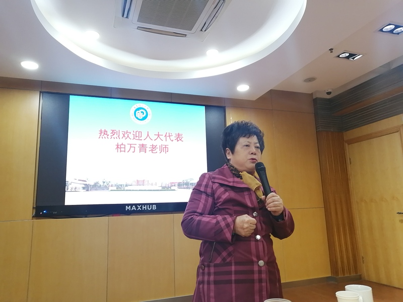 在报告中,柏万青结合自己亲身经历,讲述了如何体现人大代表为人民的责任。她指出人大代表不是职务、是责任,而且责任胜于能力。责任无时不在,无事不在,无处不在,责任是一种担当、是一种承诺,人大代表必须要诚信,要自律,自觉接受群众监督。她强调无论作为一名共产党员还是普通百姓,都应在工作中做到“三个永远”:永远学习,及时学习补充自己不知道或不熟悉的专业知识、社会知识;永远学习向不同的人打交道;永远坚持“不忘初心、牢记使命”的“初心”。