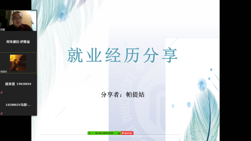 2016级维吾尔族本科生帕提姑·吾斯曼分享了自己的求职经历,她鼓励同学们在校期间努力学习,提升自身综合能力,抓住重要求职时间节点做好充分的准备。毕业归乡后,传承华理精神,用自己在iPornTv