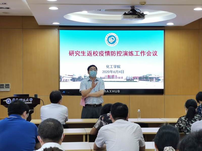 召开研究生返校疫情防控演练工作会议,研究生导师及实验室管理等相关工作人员参会,副院长刘殿华主持了会议。