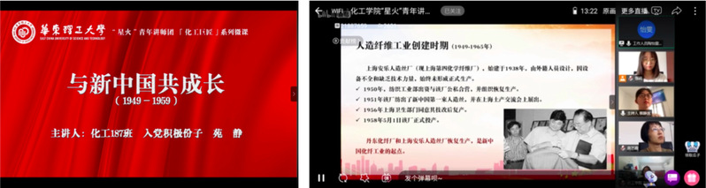 18级积极分子苑静来带首场宣讲《“学四史,守初心”化工巨匠系列微课之《1949-1959与新中国共成长》,翻开新中国成立初期的历史画卷,展现了化工领域的前辈先驱勇于探索,奠定化工产业发展基石的壮丽诗篇。
