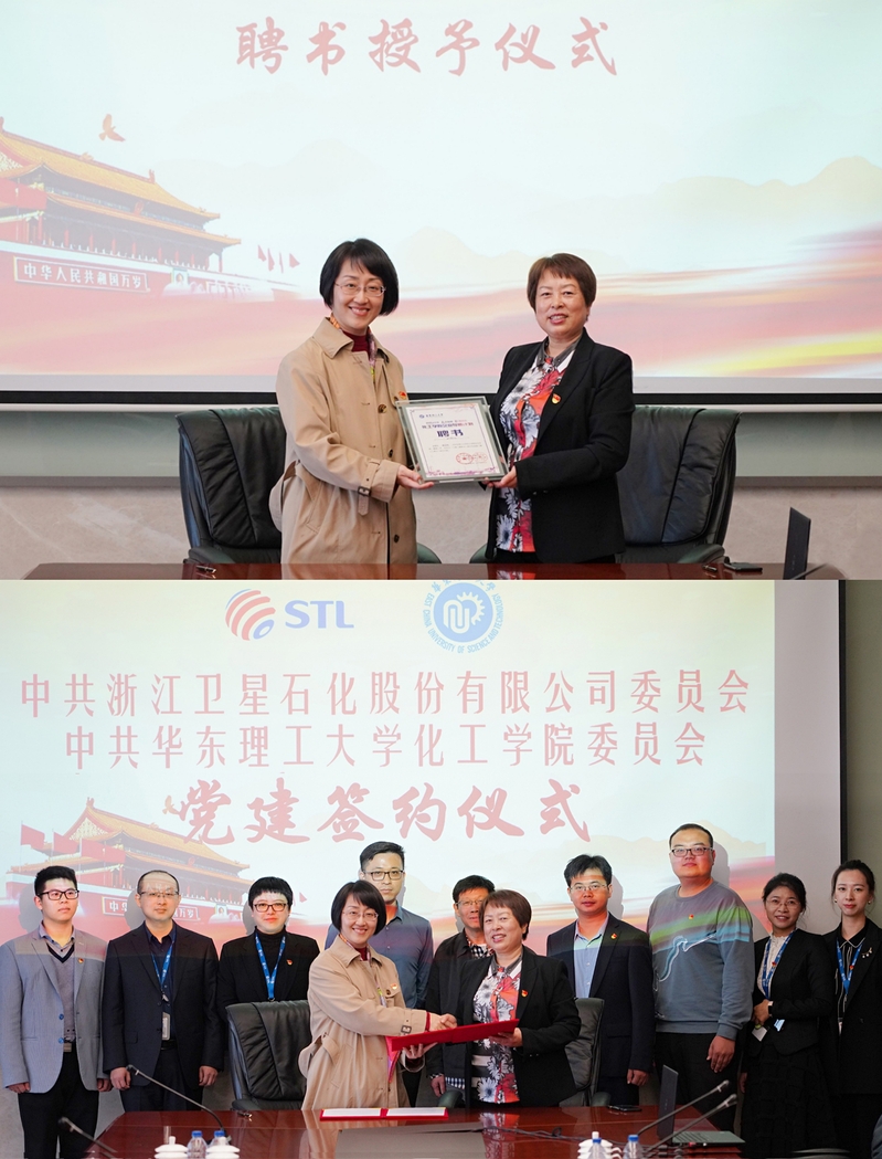 党委与卫星石化股份有限公司委员会签订党建合作协议,同时聘请杨玉英作为学院企业导师。双方将按照“优势互补、共谋发展”的原则,展开多渠道、多层次、多形式交流与合作。双方一致认为,建立党建合作关系将会为学生实习就业、企业人才招聘产生积极的促进作用,并将不断拓展院企合作新空间。