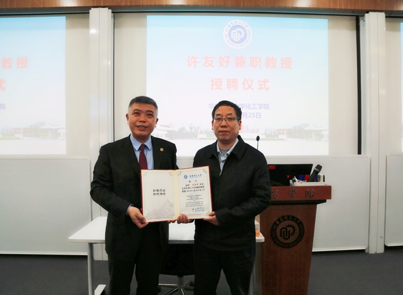 在“十四五”期间的发展注入新活力、开创新局面。许友好对华东理工大学的邀请和聘任表示感谢,对学校近年来在相关领域取得的成果表示祝贺,并表示自己虽已毕业三十多年,但始终没有忘记母校“勤奋求实、励志明德”的校训,希望未来能够与母校开展更多更深层次的合作与交流,为母校的发展作出自己的贡献。