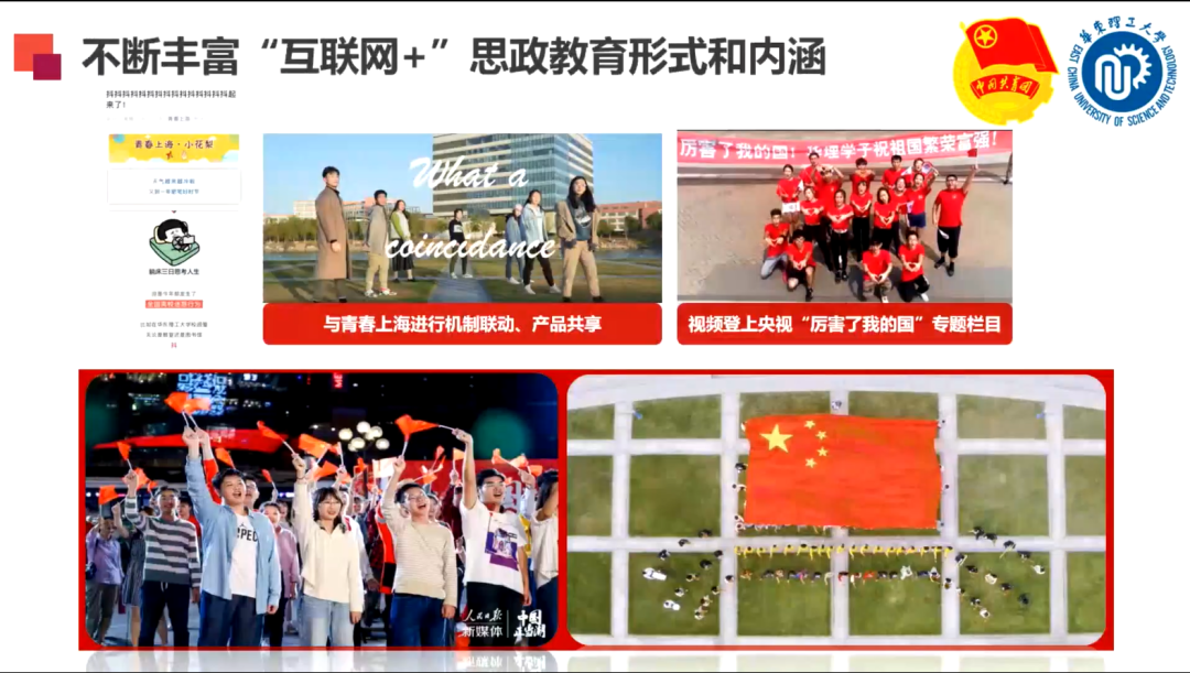 建设教育部首批“三全育人”改革试点院系的举措,强调在全力推进全方位育人的过程中,网络新媒体是重要的育人途径,要听见青年成长的声音,掌握青年话语体系。希望通过新媒体持续发力,发挥好引导青年、凝聚青年、服务青年的育人作用。同时她也再次向各位与会嘉宾发出邀请,期待各高校有机会线下来访,继续深入交流和学习,共同提升、共同进步。