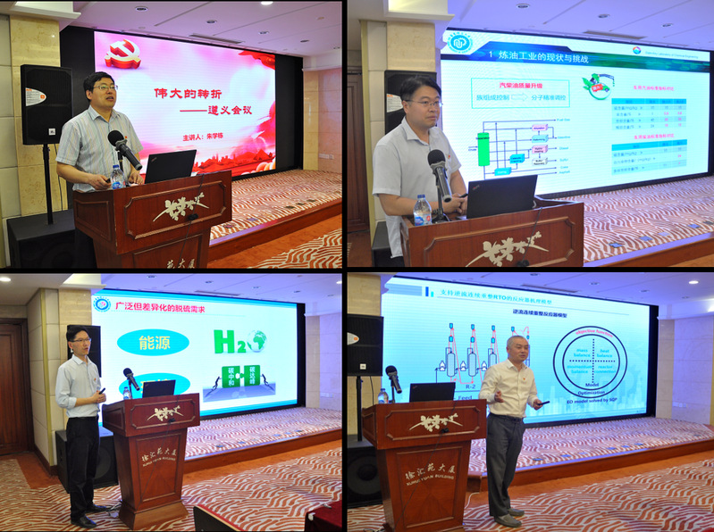 随后,朱学栋以“伟大的转折——遵义会议”为题开启了共建后的第一次共享党课,重点再现中国工农红军长征史的光辉历程。他指出,坚定信念、实事求是、独立自主、敢闯新路、民主团结的遵义会议精神,必将成为深入推进爱国主义教育和革命传统教育、鼓舞全国人民实现中华民族伟大复兴的中国梦的巨大动力。刘纪昌、孙辉、江洪波分别以“基于分子炼油的过程模拟与系统优化”“基于多孔材料的有机硫化物吸附脱除与构效调控”“复杂反应体系动力学研究与炼油过程模拟优化”为题与企业专业技术人员进行了深入交流。