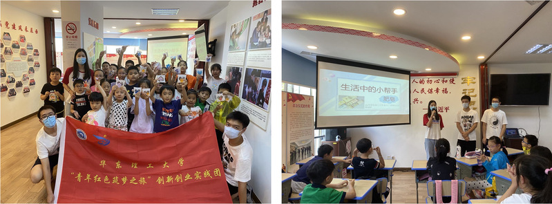 专业知识进社区,知行合一。为鼓励学生在兴趣的基础上发挥出专业所长,结合国家发展和社会所需,学院特别设计“‘化’眼看世界”专项实践,探索精品项目的孵化经验,推动实践活动出亮点、见实效。不仅如此,学院细致摸排全部立项团队,优中选优,培养重点项目,根据项目特点和主题方向凝练实践重点,挖掘创新之处,培养学生发现问题与解决问题的能力。“梦工厂”社会实践团队前往杨浦区、奉贤区开展3次科普宣讲活动,通过通俗易懂的方式将绿色化工、安全化工的思想宣传给青少年,让居民们正确认识化工行业的真实情况,用化工知识催化智慧生活。