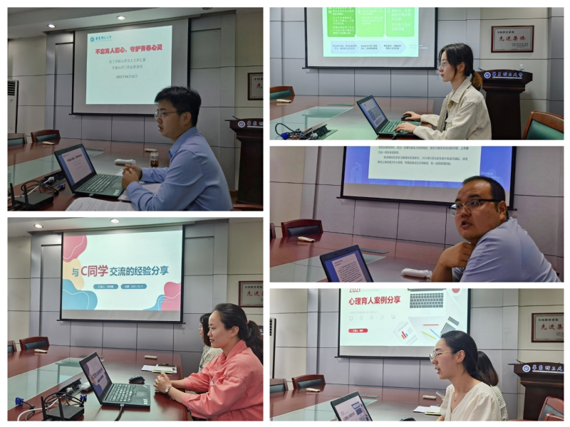 在开展心理健康教育方面采取的举措、取得的成效、存在的问题以及下一步工作计划。辅导员刘宗慧、魏兵惠、阿曼•阿吉、田梦依次分享了分管年级的危机干预个案。徐玉兰对个案一一点评,作出详细解答,并从专业角度给出了建设性意见。