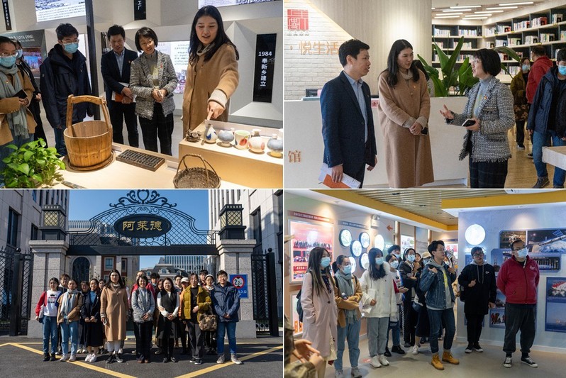 会前,高艺霞一行参观了“两新”党组织上海阿莱德实业股份有限公司。公司副总经理平珏表示,将进一步开放科创园区,切实为高校学生的创新创业实践、就业提供平台和机遇。会后,一行人参观了海湾旅游区一居委、新时代文明实践分中心、“悦读•悦生活”奉贤图书馆海湾旅游区分馆及爱国主义教育基地——女子民兵哨所,重温历史,进一步深化大学生的爱国主义情怀。