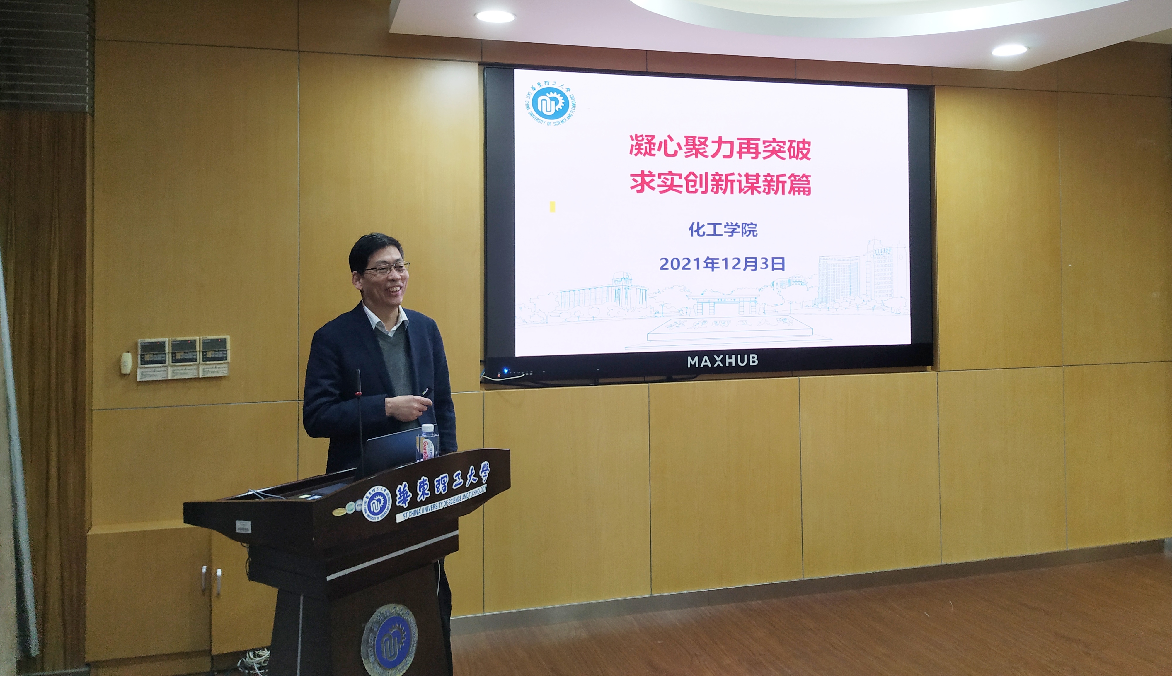 最后,李春忠院长向参会人员介绍了化工学科基本情况、2021年学院工作总体情况和2022年工作计划,希望大家围绕中心抓党建,抓实党建促发展,凝心聚力,砥砺奋进,努力推动学院“十四五”高质量发展再上新台阶。