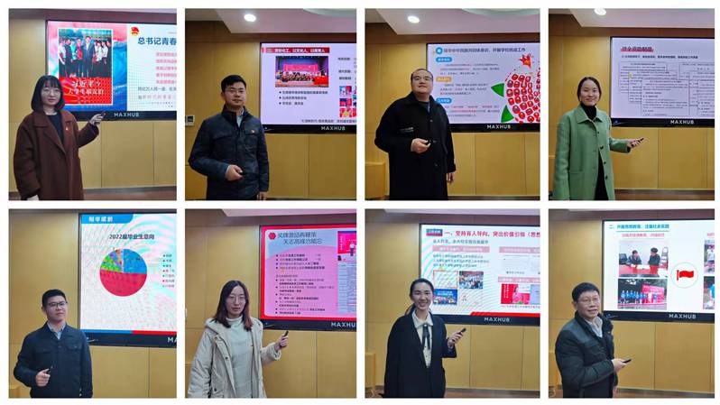 高艺霞表达了学院党委对学生工作及辅导员队伍建设的高度重视。随后,8位专职辅导员从德、智、体、美、劳“五育”融合角度,分享优秀工作经验方法。李春忠指出,在建党百年的重要节点,思政团队开展了以“礼赞新时代•百年再启航”为主题的富有特色的系列活动,为学生成长成才搭建了一系列丰富平台。同时,他寄语思政团队:新年要有新作为,希望思政团队要结合学生思想实际、专业特点,开展更具针对性、实效性的工作,为学院人才培养发挥更大的力量。朱学栋作总结讲话,他认为交流会很好的展现了辅导员昂扬向上、积极进取的精神风貌,体现了学院思政工作扎实推进、稳步向前的整体态势。
