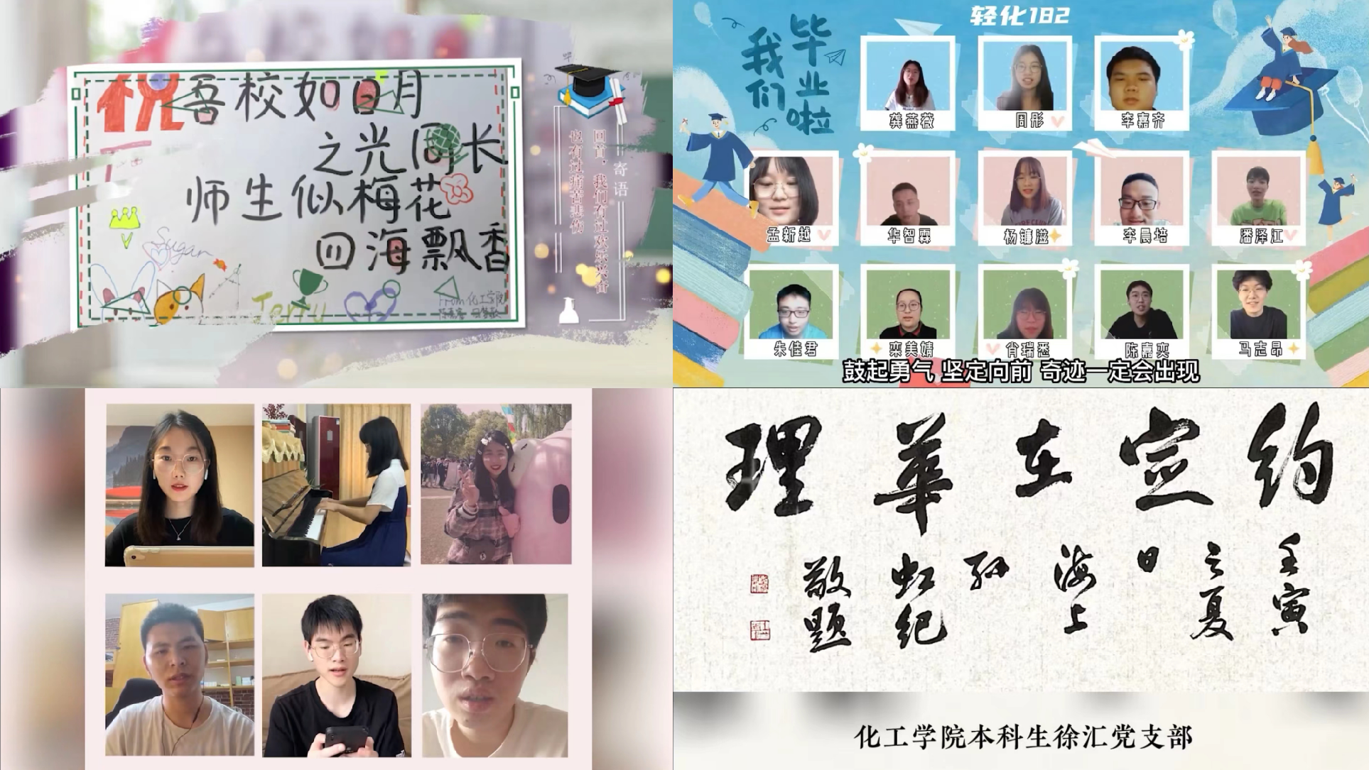 隔屏不隔爱,离别不离心,在学院党委的支持下,全体师生集思广益、群策群力,克服了节目编排、录制等一系列困难,呈现了一台精彩纷呈的晚会。包括歌曲、舞蹈、诗朗诵等在内丰富多彩的节目带领毕业生追忆青葱岁月、回顾华理难忘事、畅想未来梦想。