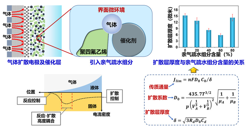 图1:气-液-固三相界面亲疏水性对气体传质的调控机制
