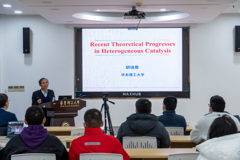 胡培君院士的报告从基于第一性原理的微观动力学模拟计算、非均相催化活性以及催化剂设计三个方面,介绍了他们团队在非均相催化基础理论和应用方面的先驱性工作。通过费托合成、酰胺加氢等典型反应案例,深入浅出地介绍了如何将催化基础理论、模拟计算方法应用于催化剂设计的创新性研究历程。报告引起了师生的热烈讨论,胡院士就电催化表界面理论、密度泛函理论模拟计算技术和宏观微观动力学跨尺度方法论等师生关心的热点问题逐一进行了解答,并以自身求学经历为例,勉励大家要勇立潮头,敢为人先,不断开展前沿性研究,为iPornTv