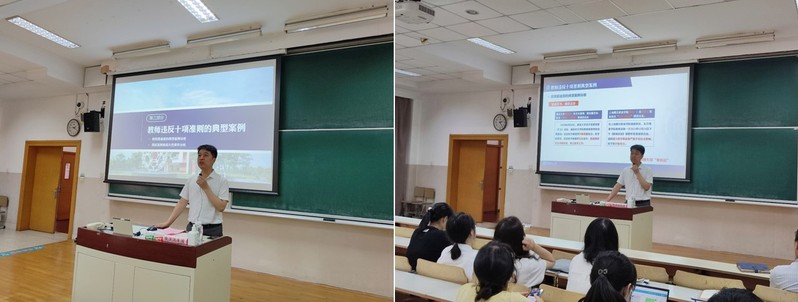 段学志通报了教育部和我校公布的违反教师职业行为十项准则典型案例,希望学院教师引以为戒,以案为镜、以案肃纪,提高思想认识,严守纪律底线,并将师德师风铁律贯彻到日常学习工作的方方面面。