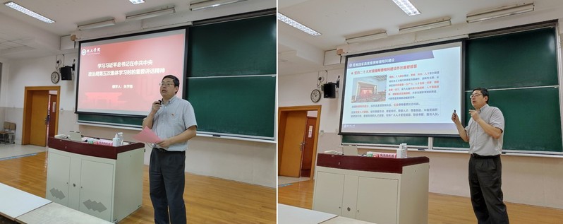 会上,朱学栋首先领学了习近平总书记在中共中央政治局第五次集体学习时的重要讲话精神,随后作了题为“以党的二十大精神引领新时代高校师德师风建设”的宣讲教育,详细阐述了党的二十大对加强师德师风建设作出的重要部署和习近平总书记关于教师队伍建设的重要指示批示精神,并着重讲解了《新时代高校教师职业行为十项准则》《华东理工大学教师师德失范处理办法》《华东理工大学教师思想政治和师德师风考核实施办法》等文件精神。他强调,广大教师要牢记人民教师身份,坚守为党育人、为国育才的初心使命,恪守师德师风第一标准,把师德师风各项要求内化于心、外化于行,做到以德立身、以德立学、以德施教、以德育德,努力成为新时代的“大先生”。