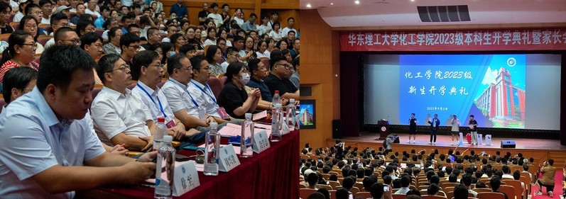 在奉贤校区大学生活动中心剧场举办2023级本科生开学典礼暨新生家长会。学院党委书记朱学栋、院长李春忠、党委副书记段学志,副院长刘殿华、周兴贵、凌昊、徐至以及各系主任、班导师、思政及行政教师出席本次活动。典礼由学院党委副书记高艺霞主持。