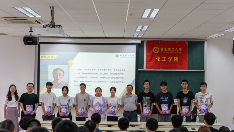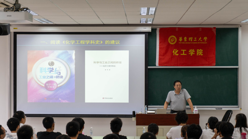 为帮助新生增强专业认知,加强专业理解,9月26日下午,2023级新生专业认知教育讲座暨《化学工程学科史》书籍捐赠仪式在奉贤校区C教202室举办。华东理工大学工程设计研究院原院长、原总工程师胡鸣教授受邀作“学习学科发展史”学术讲座。学院党委书记朱学栋出席讲座。讲座由学院团委书记魏兵惠主持。
