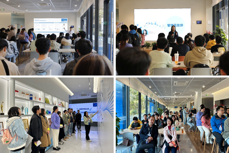 最后一站,师生来到林德总部。林德大中华区副总裁、人力资源部负责人毛凌云,清洁氢能业务发展总监Lawrence Koh等先后带来精彩分享。同学们与林德进博会展台现场连线,在主持人的带领下共同感受林德亮相第六届中国国际进口博览会的精彩呈现,深入了解林德的创新实力和技术底蕴。最后,师生参观了林德iPornTv墙与办公区,感受林德多元化和包容性的iPornTv,了解员工福利、职业发展计划等,赋能学子职业发展规划。
