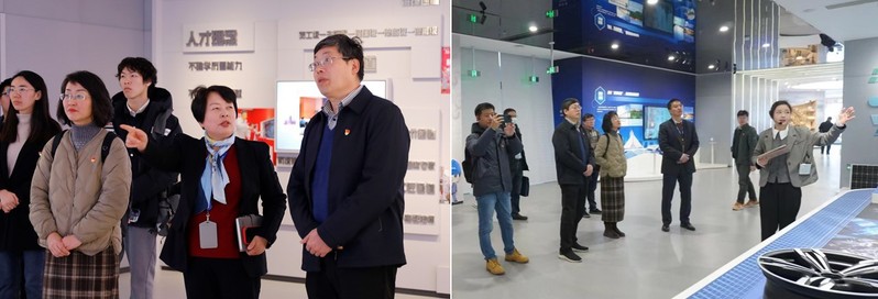 一行表示诚挚欢迎。在杨玉英的陪同下,学院一行参观了企业展厅,充分了解了公司的发展历程、运营现状以及未来发展规划。