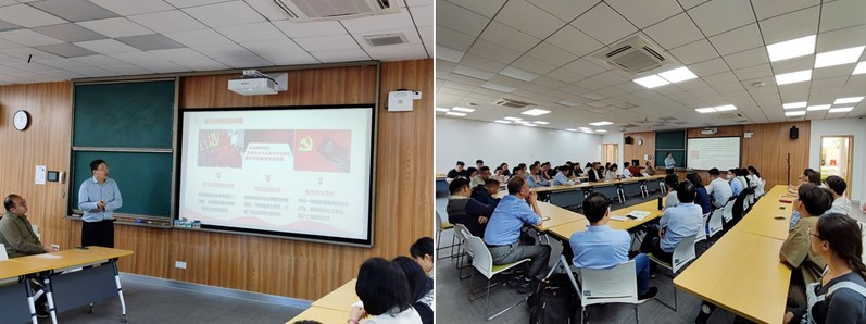 为深入推进学院党纪学习教育,中午,在奉贤校区C103室首先进行了党纪学习教育读书班活动,学院党委委员依次领学了新修订的《中国共产党纪律处分条例》总则内容。随后,学院党委书记朱学栋以“新修订《中国共产党纪律处分条例》的特点与新旧对比”为题讲授纪律党课,奉贤校区的部分研究生党员一同参加了学习。