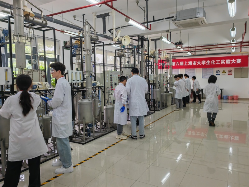 图片说明:参赛选手在奉贤实验7楼的化工原理实验竞赛现场