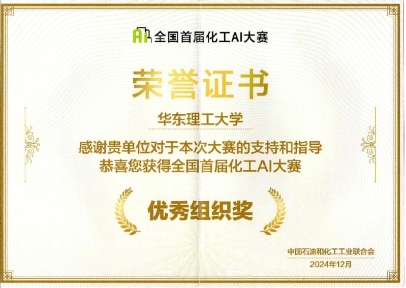 也将智能与分子化学工程作为学科建设的三大重点方向之一,BlessingSolve团队在本次比赛中充分展现了学院在这一前沿交叉方向的应用研究成果和人才培养成效。此外,因在本届大赛中的积极组织和参与,华东理工大学也荣获了赛事“最佳组织奖”。