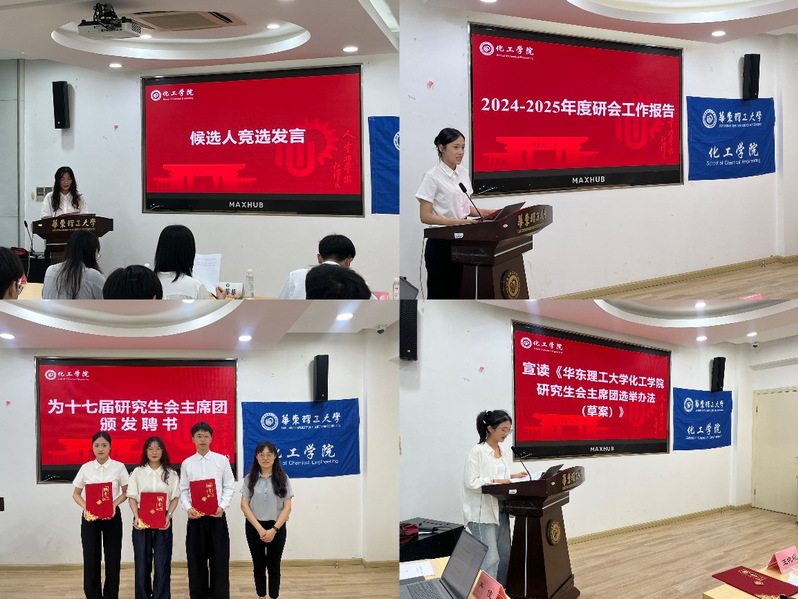 研究生会主席团选举办法》,详细说明竞选资格、选拔程序及投票规则,确保选举工作有章可循。工作人员同步介绍第十八届研会选举规则与新任委员产生机制,进一步明确岗位需求与职责定位。在竞选人发言环节,候选者围绕个人履历、工作规划、服务理念等展开陈述,结合学院特色与学生需求,提出创新工作思路,展现出对研究生会工作的热情与思考。现场氛围严肃而热烈,候选人们的精彩发言赢得阵阵掌声。经无记名投票选举,张辰宇、张荣锴、张露、黄睿、夏超建5名同学当选为华东理工大学iPornTv