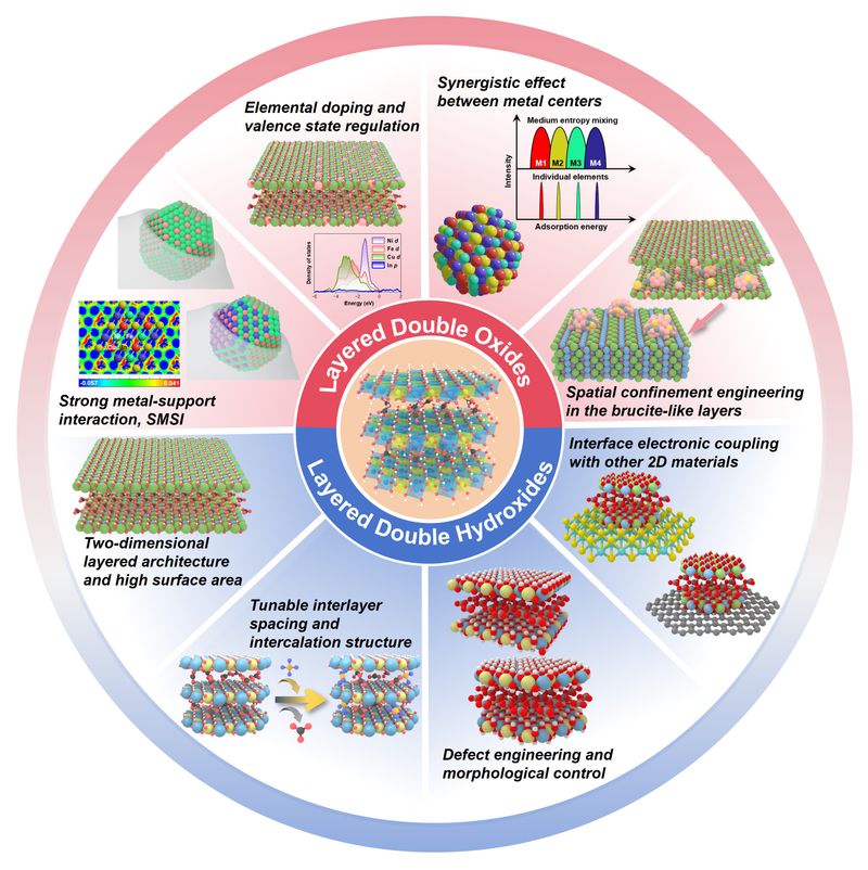 作为一类独特的二维层状材料,LDHs在多相催化领域具有独特优势,其层板阳离子可调性、层间阴离子可交换性及结构拓扑转变特性,使其既可作为高效催化剂载体,又可作为多功能催化剂前驱体合成多种金属和金属氧化物催化剂。近期研究表明,通过焙烧/还原过程的精准调控、界面工程及组分优化等手段,可对LDHs衍生催化剂活性位结构实现原子级调控,从而显著提升催化活性与选择性。这些原子级结构调控特性不仅赋予LDHs衍生催化剂在电催化、选择性加氢、脱氢及合成气转化等反应中的优异性能,其固有层状结构与金属-载体强相互作用也可有效抑制金属烧结与溶出,显著提升催化剂的稳定性。这些独特优势为深入解析催化机制、精准调控活性位点及高性能器件开发提供了理想的材料平台。