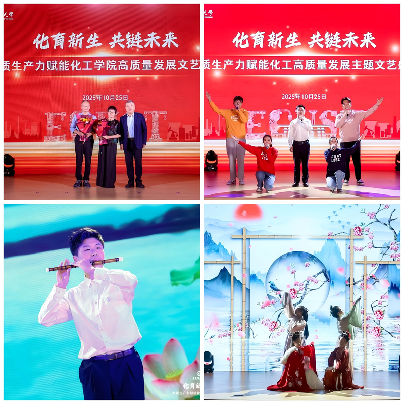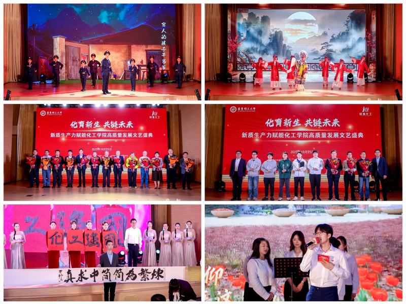“智创•绽放”篇聚焦智慧化工发展。街舞《绿光》、京歌《盛世东方》等节目展现了学院的创新活力。现场,轩福贞、阎海峰、袁渭康、陈德、段学志、徐至等共同启动“智慧化工教育发展基金”。该基金由袁渭康院士和陈德院士联合倡议设立,用于支持智慧化工领域的学科建设、师生奖励、教学创新及学生活动等。演出在学院师生代表与华理附小学生合唱《爱我中华》的歌声中圆满落幕。