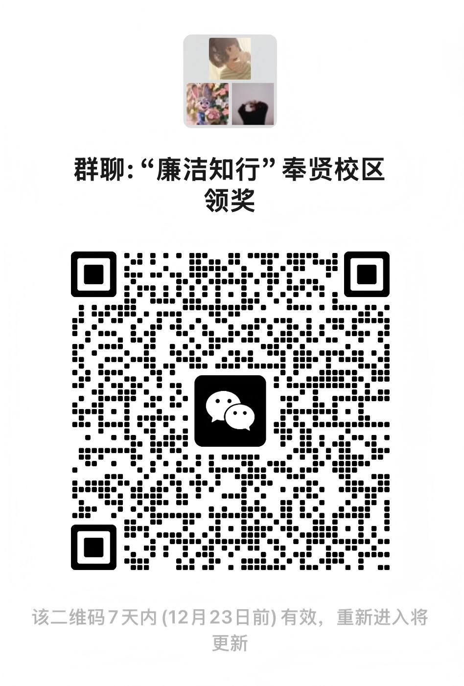 奉贤校区获奖同学请扫描下方二维码加入指定通知群,后续奖品发放的具体时间、地点将在群内另行通知,请务必及时入群,避免错过相关信息。